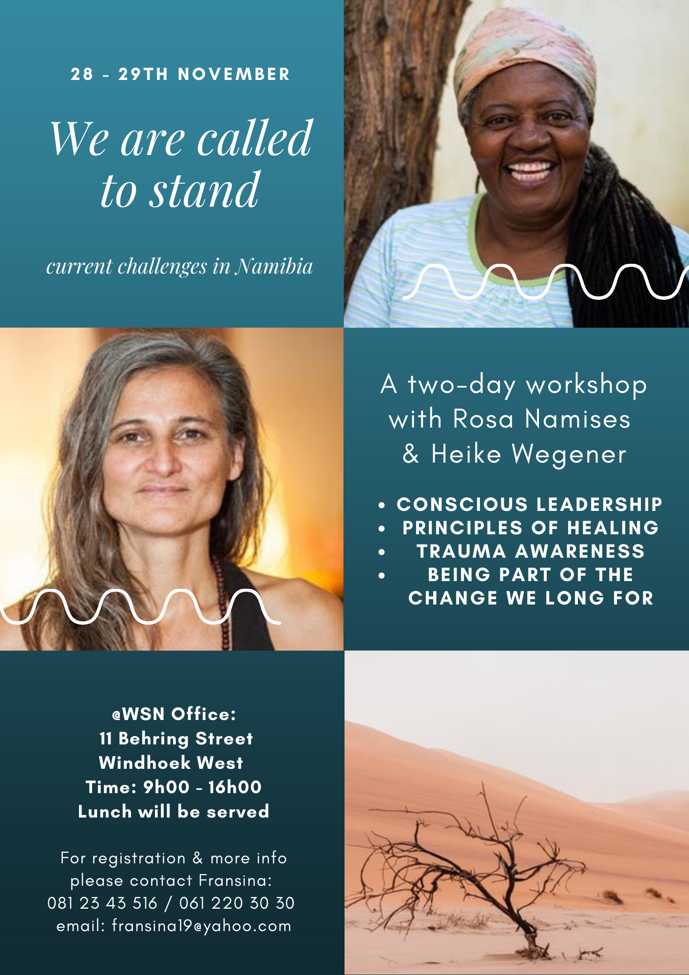 our healing journey we will be more focused on a political dimension: We want to support the people of Namibia to stand up for their purpose. This means: facing oneself, each other, the country; the individual, and the collective pain and beauty which is carried in each person. For Visolela it's clear that she's called to stand for the next election in 2024 as an independent presidential candidate. That's also the slogan we gonna use for our